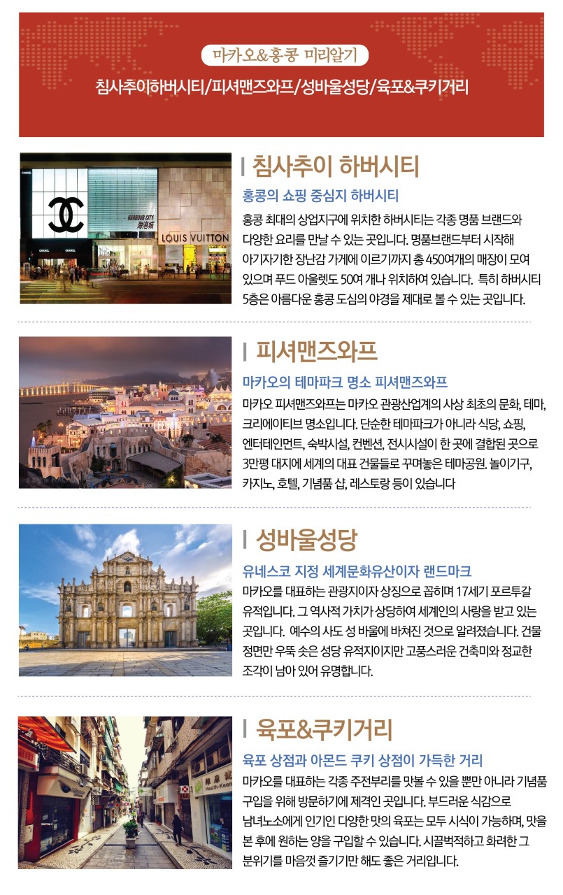 ㅇ 마카오는 카지노 기반 도시로 항시 각종 사건사고의 위험이 상존하는 곳이므로 관광지 위주로 여행하시기 바랍니다.