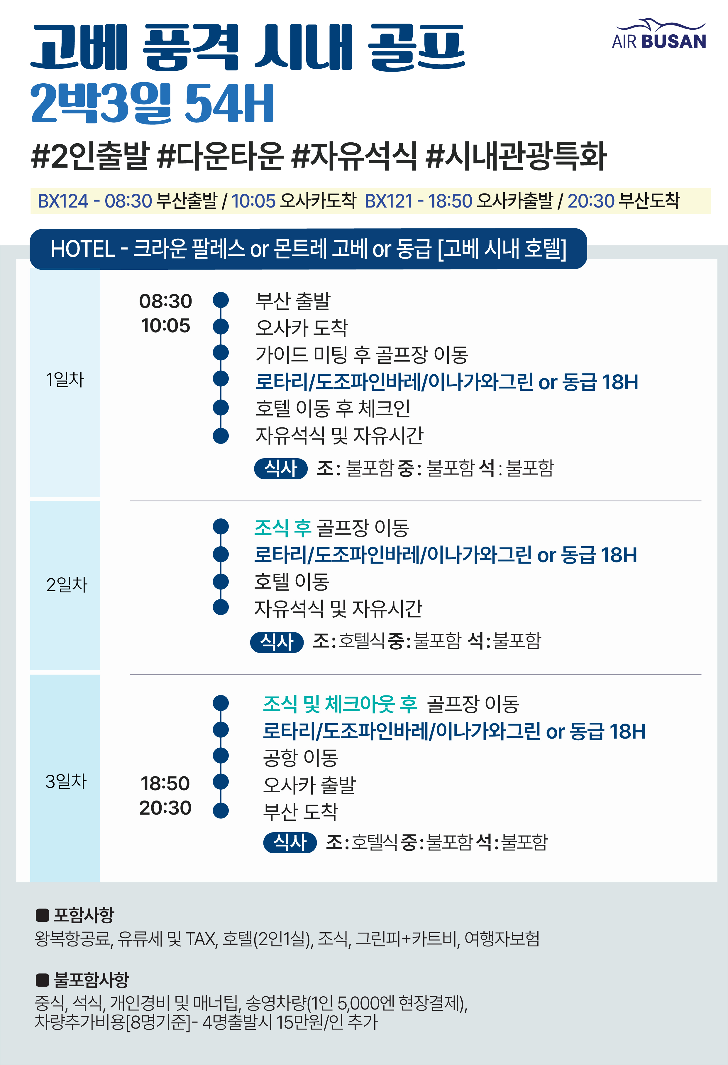 [부산출발] 고베 품격 시내 골프 2박3일 54홀 #다운타운 #자유석식 #시내관광특화