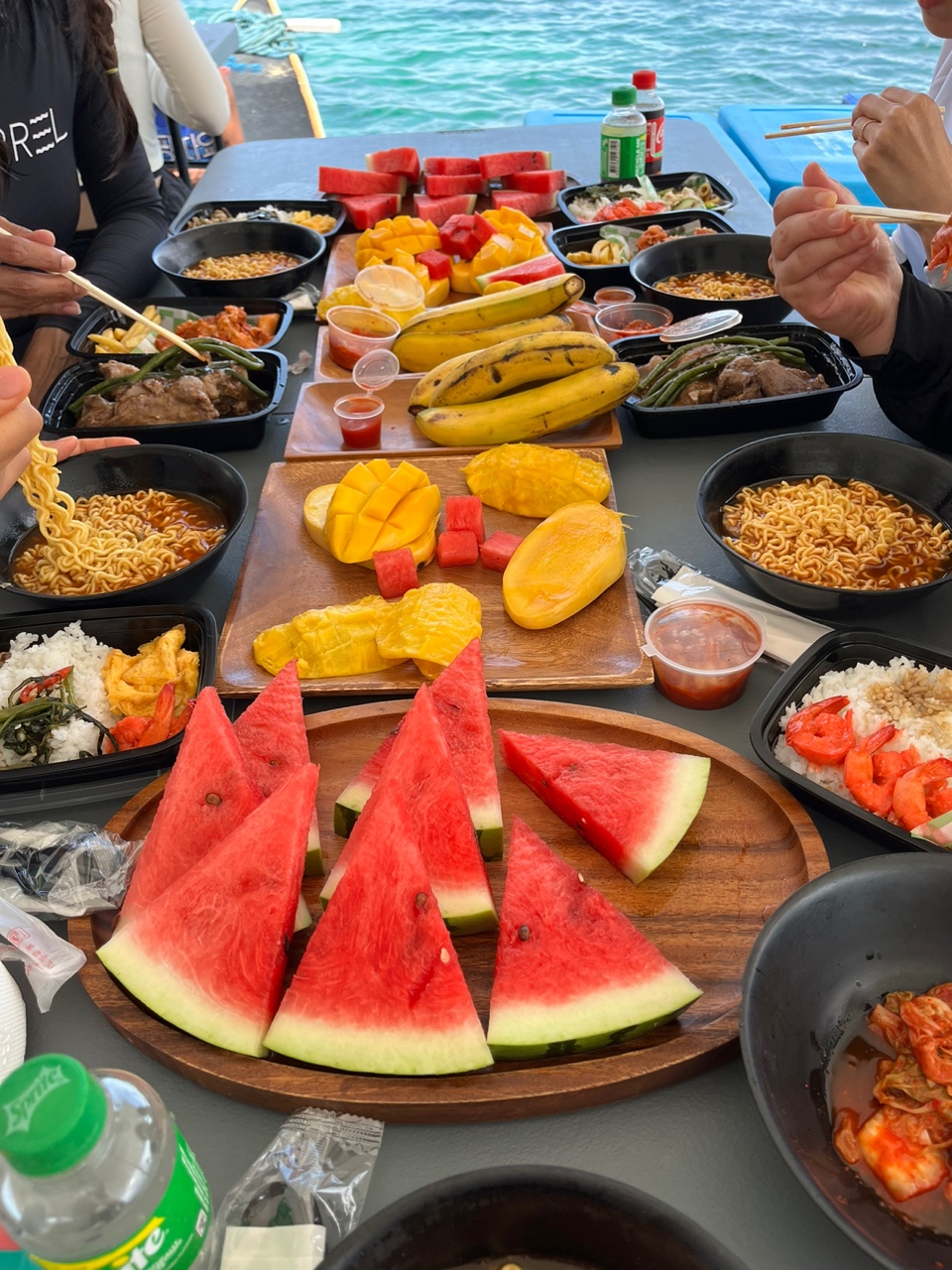 호핑투어 진짜 최고였어요. 하늘과 바다가 어우러진 풍경.... 배 위에서 먹는 과일들... 라면과 볶음밥 등 다양한 식사 메뉴도 훌륭했습니다. 아름다운 자연 속에서 맛있는 음식과 함께 여유로운 시간을 보낼 수 있었던 이번 여행, 정말 완벽했습니다. 가이드분도 항상 저희 챙겨주시고 사진도 먼저 찍어주시고 정말 고마웠다고 전해주세요.
