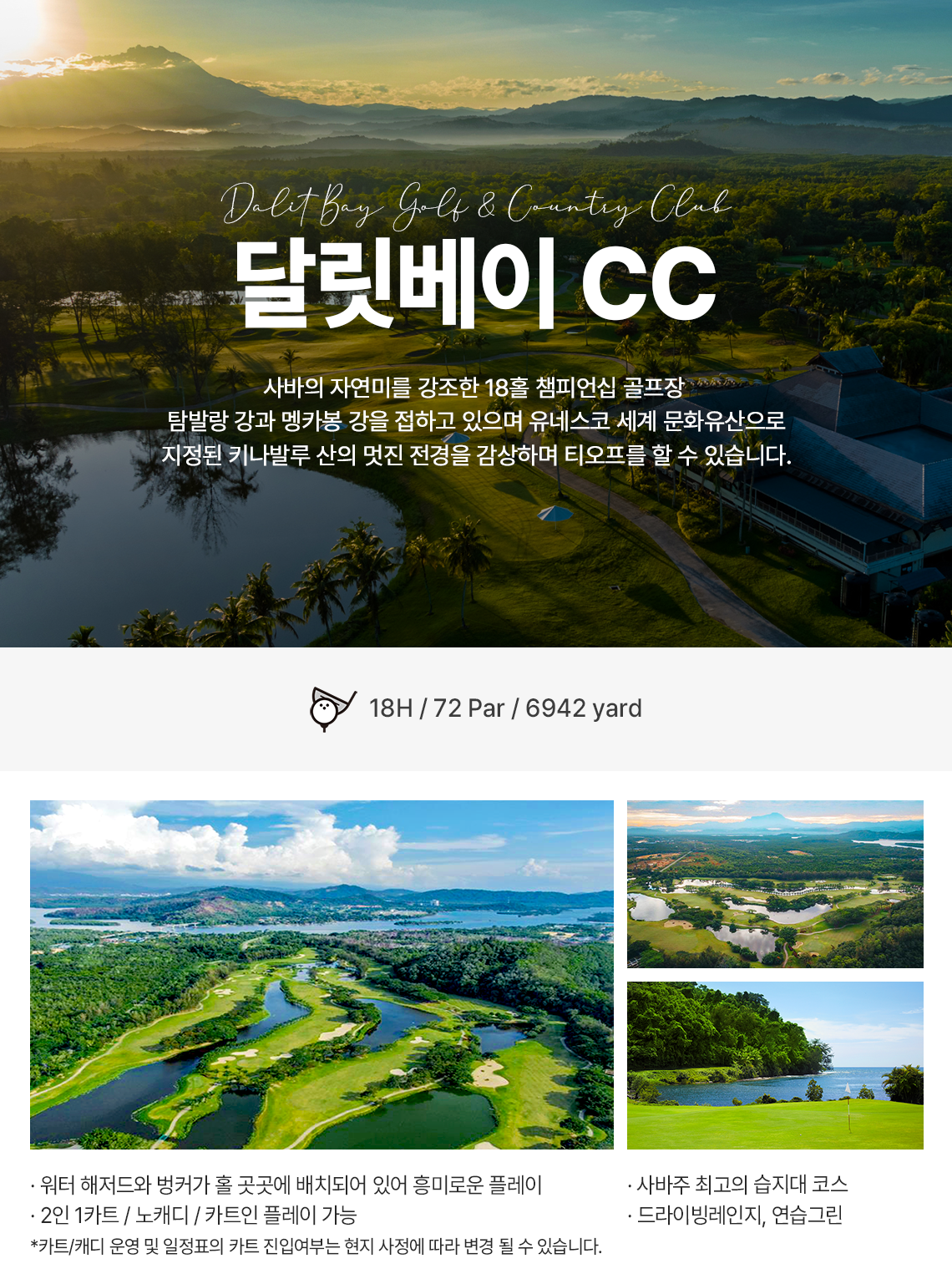 [👍이대호PICK! ] 코타키나발루 달릿베이 골프 #18홀X3회 #달릿베이CC #카트포함 #샹그릴라리조트 #3박