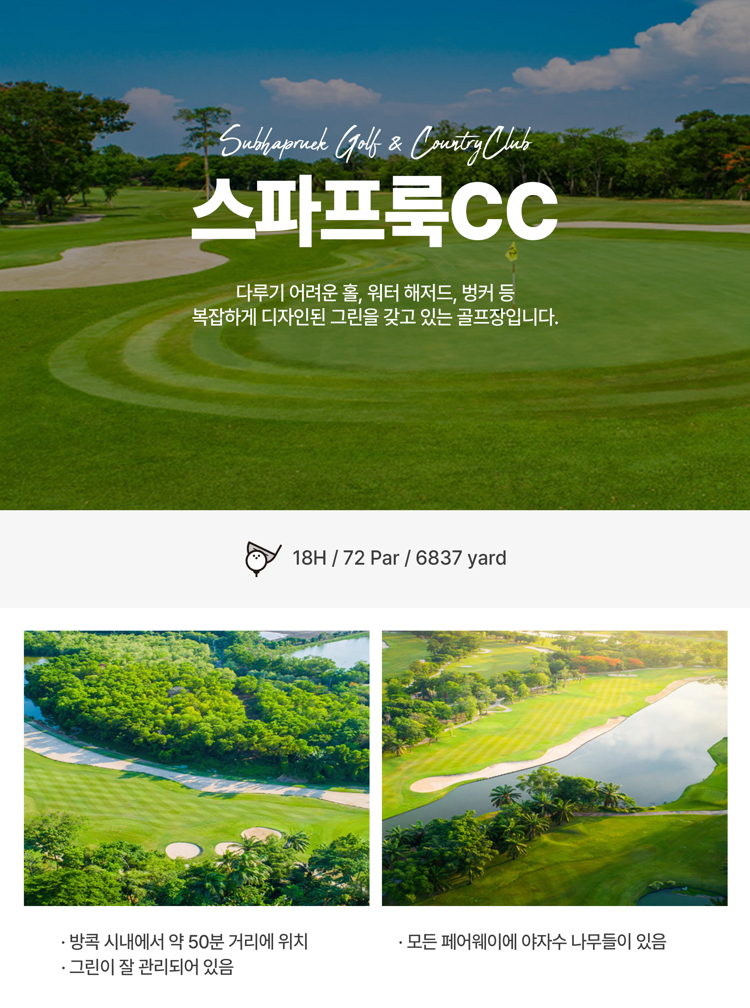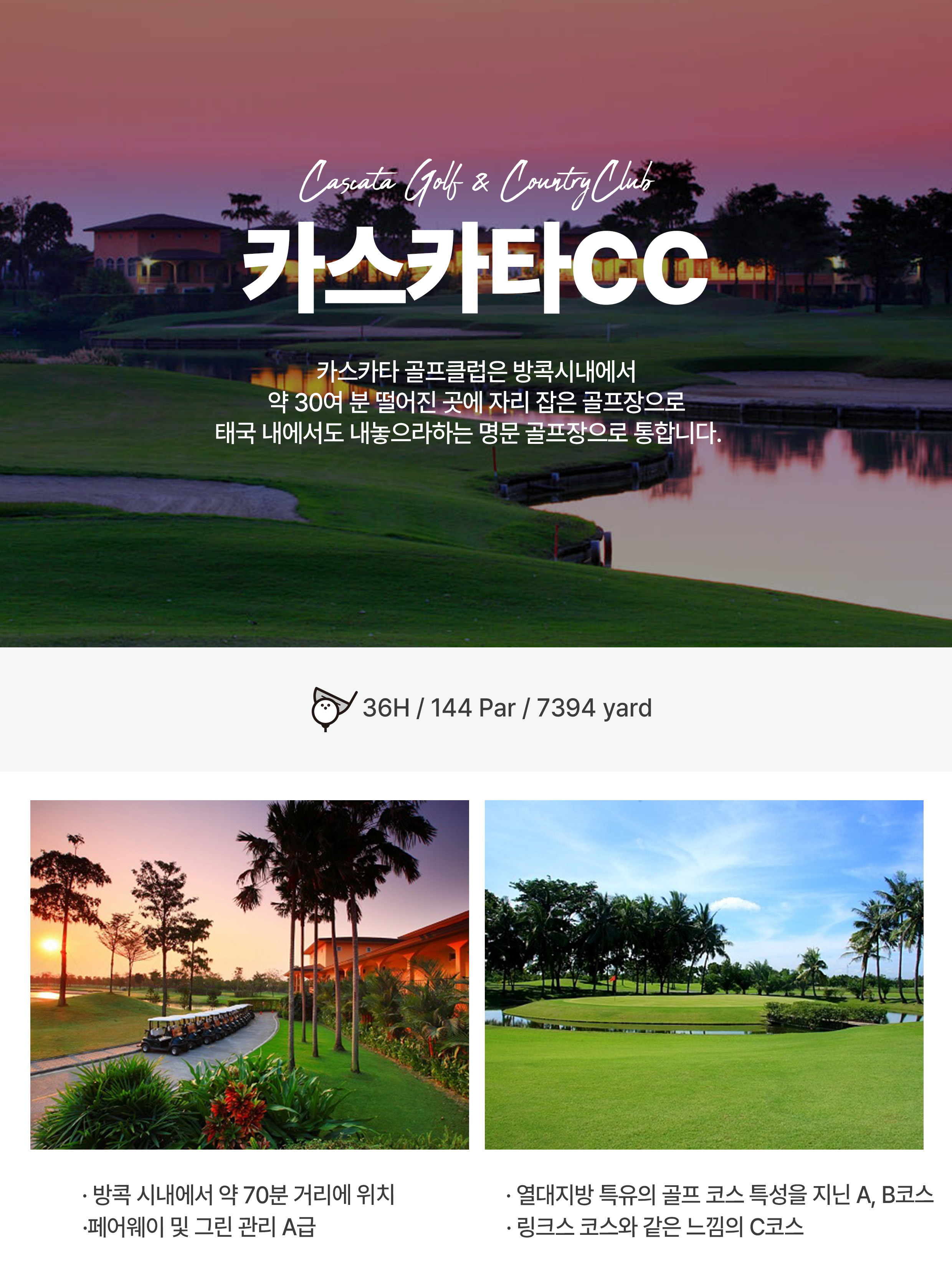 ■ 예정골프장 : 스파브룩, 카스카타, 방파콩 리버사이드, 람루카, 에카차이, 레이크우드, 로터스밸리 중 랜덤배정