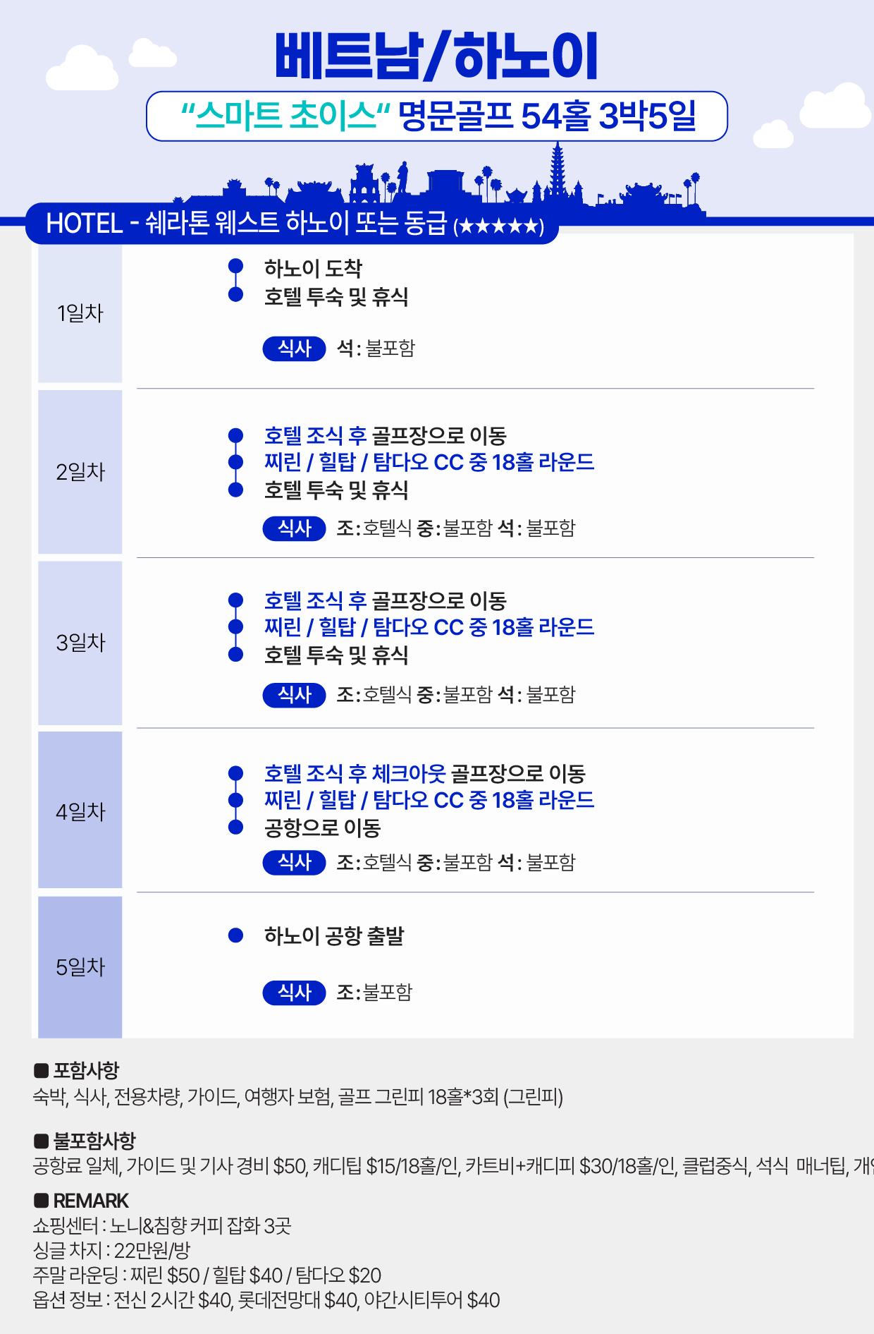 하노이#3박#54홀#월드체인호텔#챔피언쉽코스#2인출발