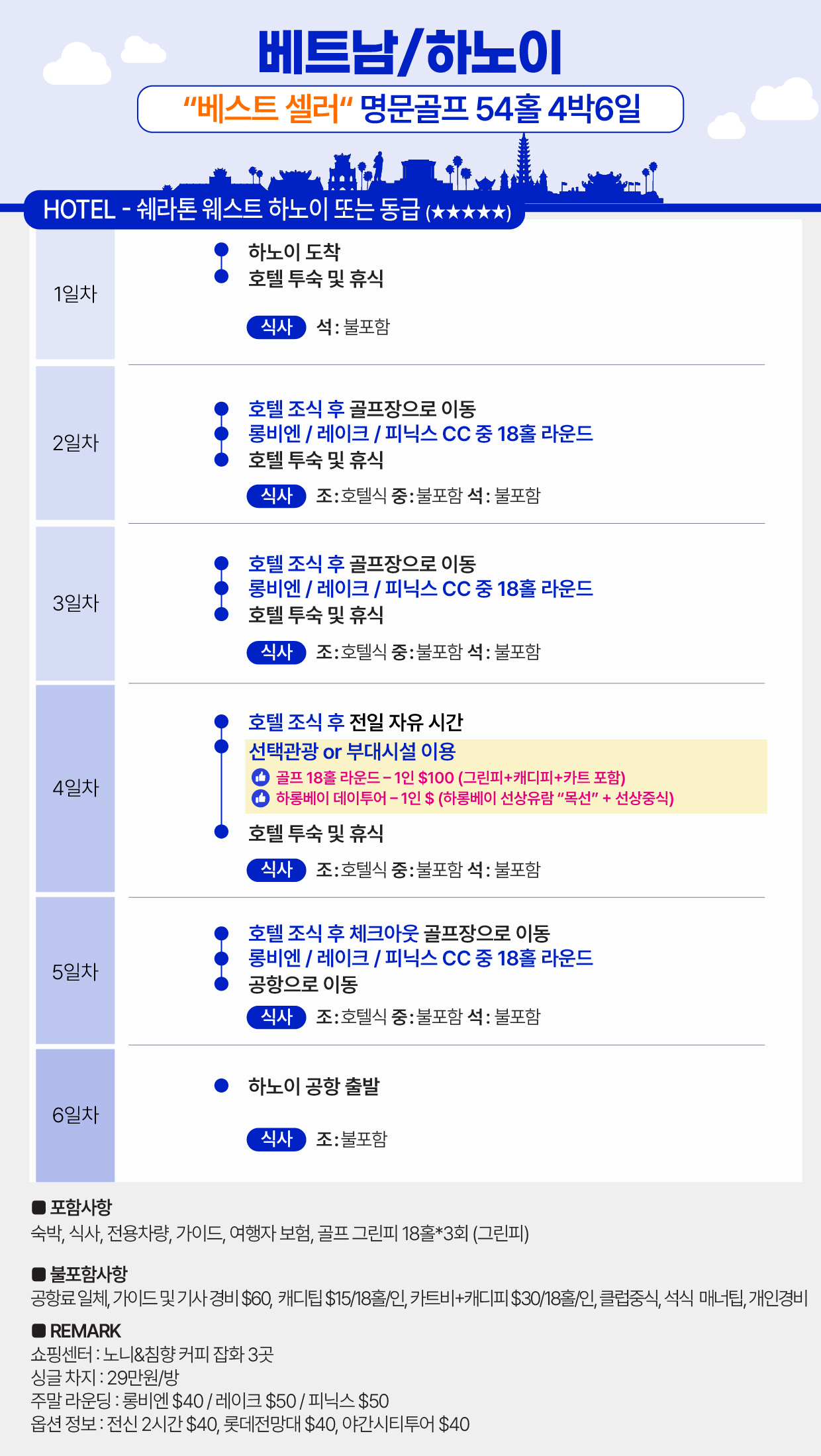 하노이4박#54홀#월드체인호텔#명문골프#2인출발