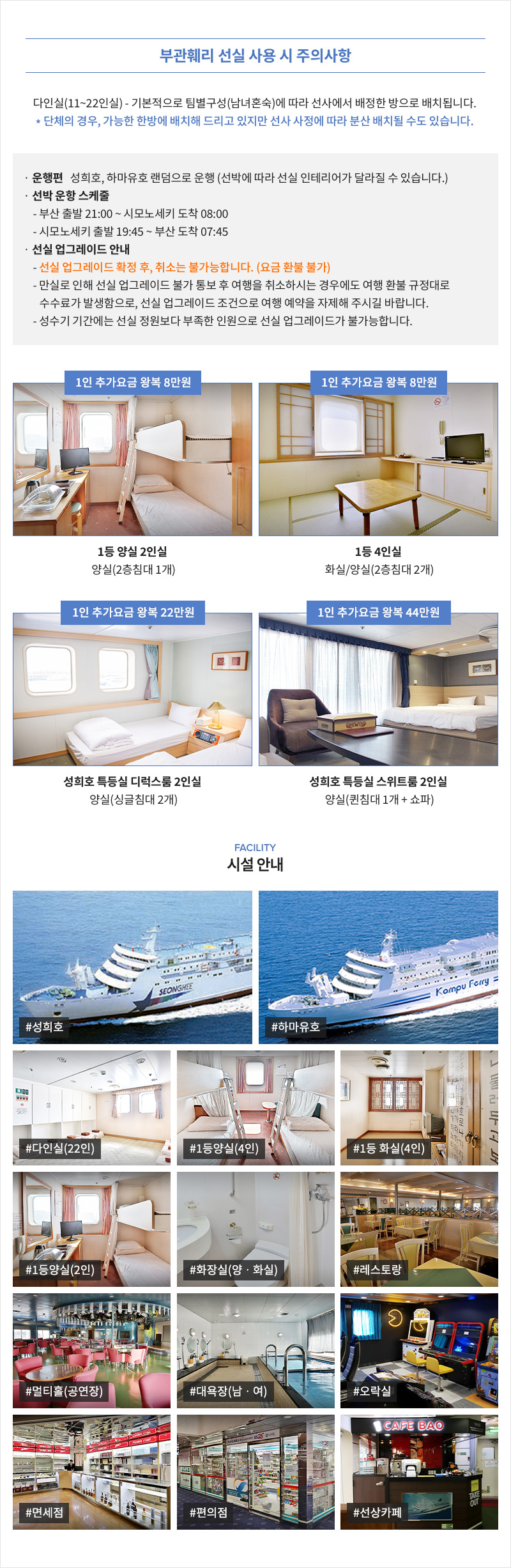 • 왕복 승선권 (부두세, 유류세, 출국세/(다인실 기준))