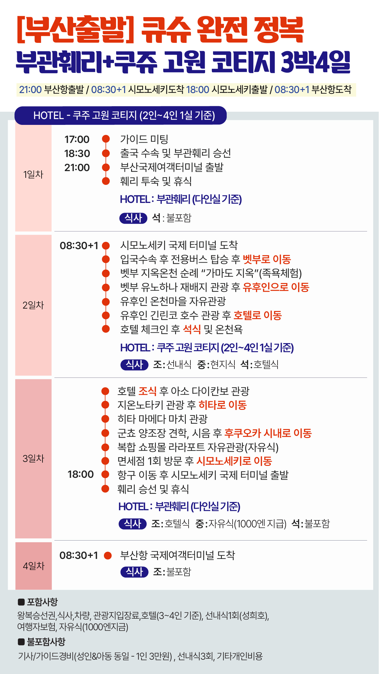 부관훼리 큐슈 여행 3박4일 쿠쥬고원 코티지 북큐슈 관광 패키지
