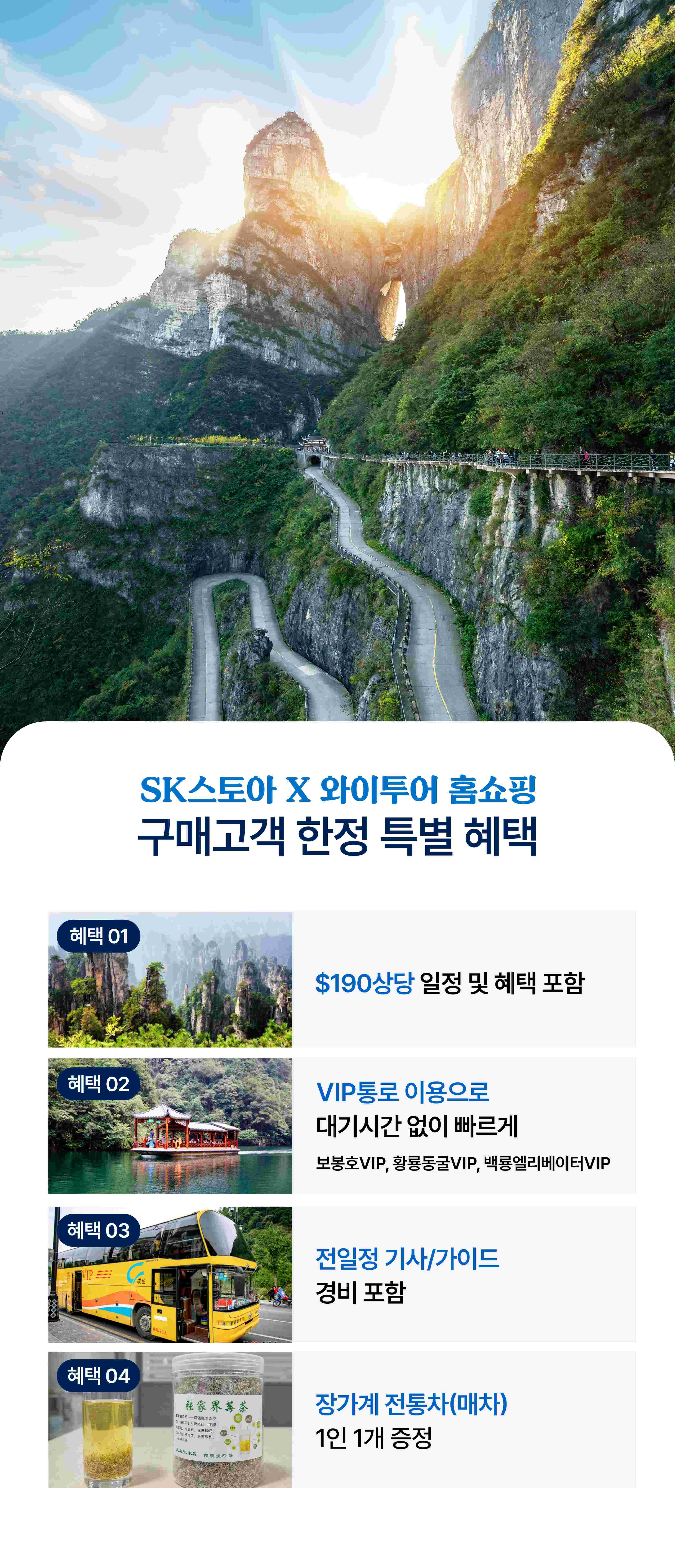 [SK스토아X와이투어] 인천出 한폭의 그림같은 장가계 5박6일/5대특식+$150불 혜택 ALL포함+월드체인호텔