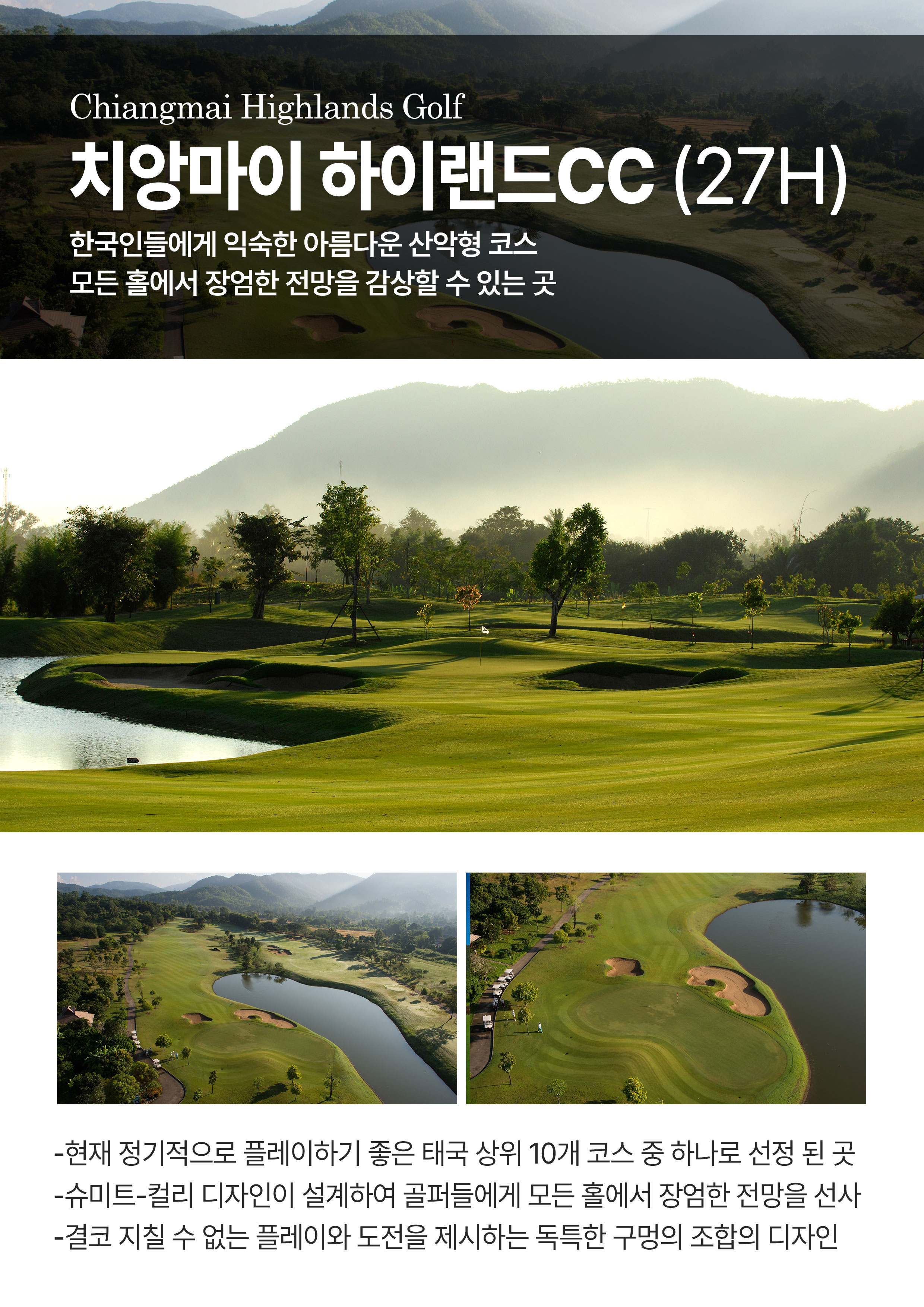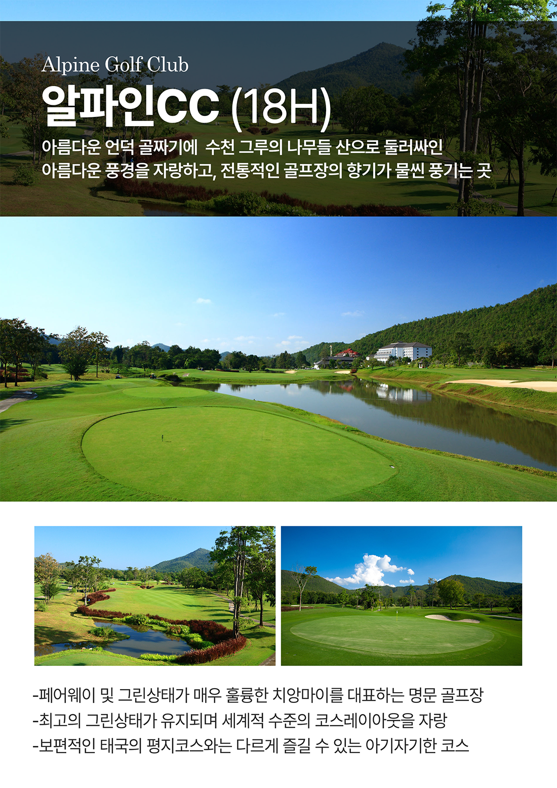 ❤️치앙마이 명문 3색골프 핵심포인트❤️ ✅ 골프에 집중! 노쇼핑 골프 패키지🕌 ✅ 해발700M에서 즐길 수 있는 치앙마이 시원골프🌊 ✅ 알파인or하이랜드or그린밸리 최상급 골프장 라운딩 포함⛳ ✅ 한국인 가이드로 편리한 골프여행