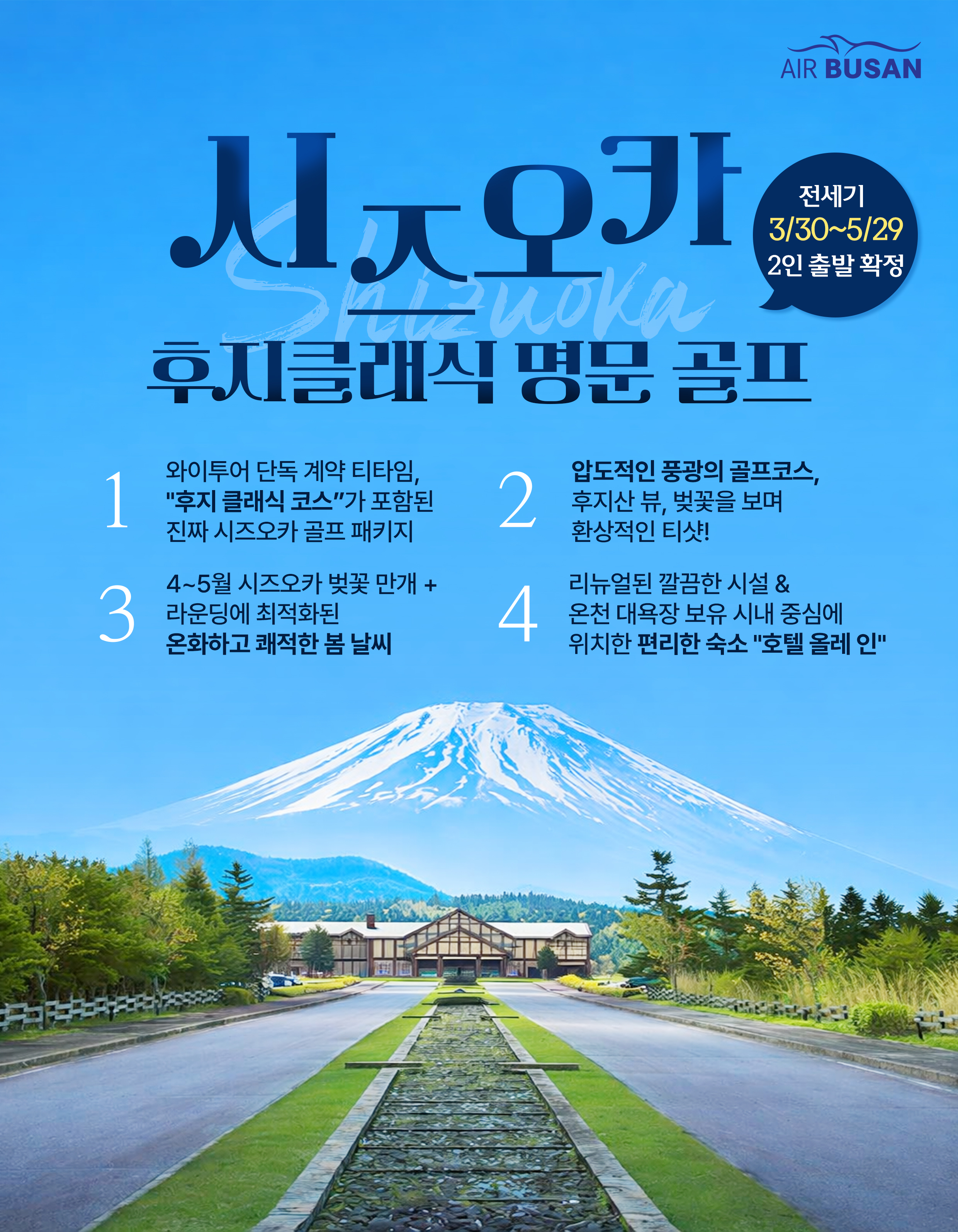 [항공불포함] ⛳ 시즈오카 후지클래식 + 시내 호텔 명문 골프 3일 #월/수출발 #18홀X2회 #후지산 뷰 골프 #대욕장 호텔