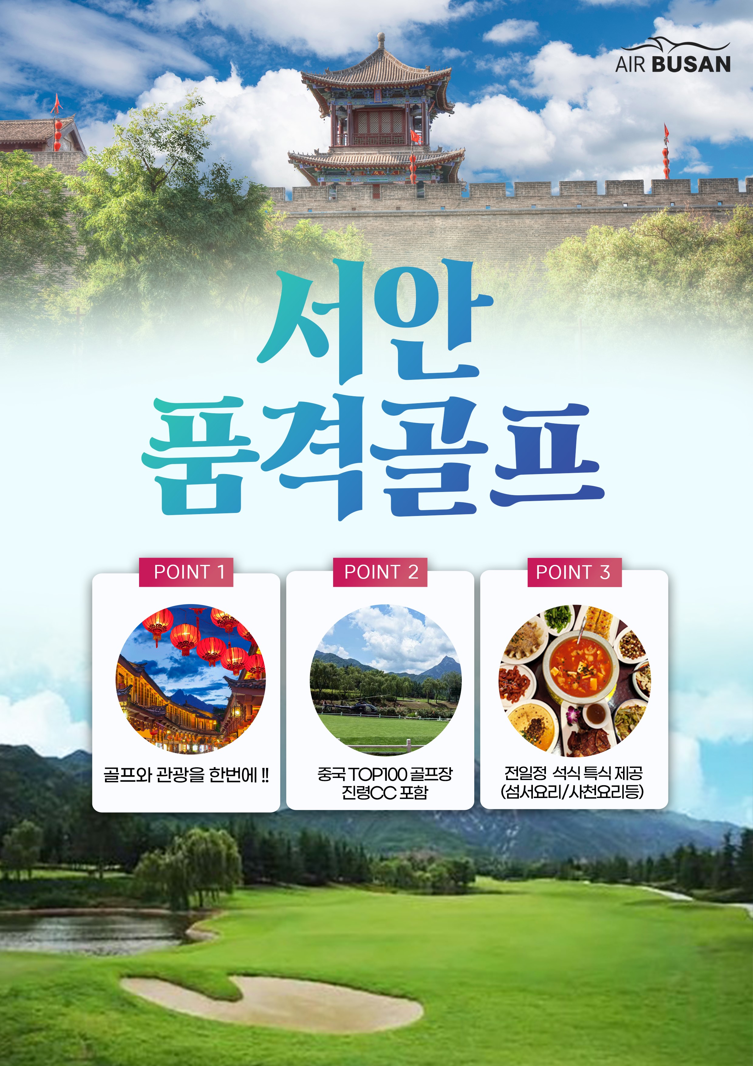 [부산출발] 🧳관광+골프🏌️‍♂️ 서안 품격골프 3박5일 - 36H