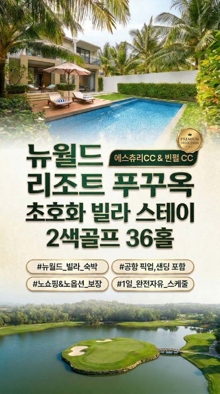 [부산출발] 푸꾸옥 골프 X 뉴월드 특급리조트 3박5일 #36홀#2색#송영차량포함#자유일정포함