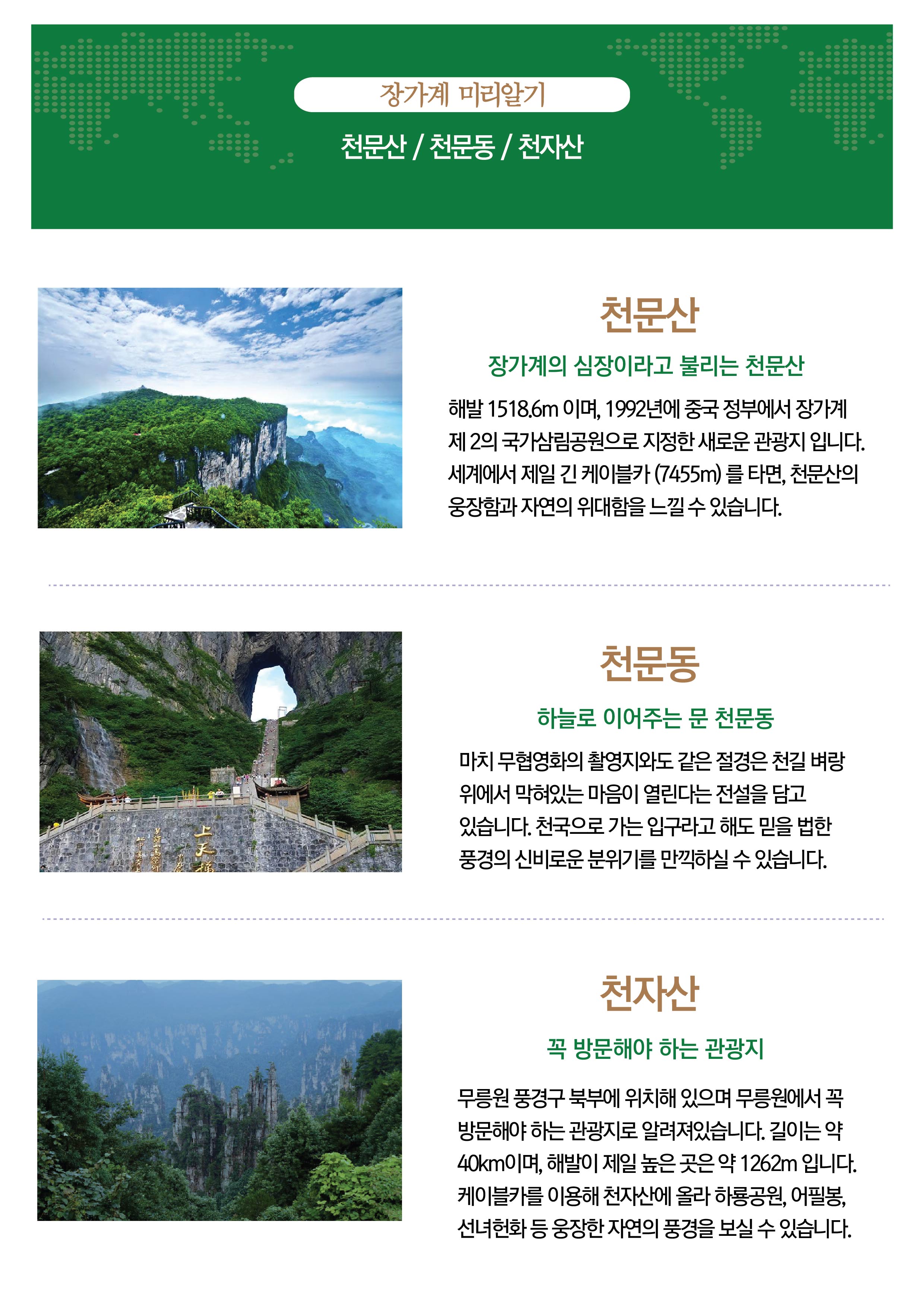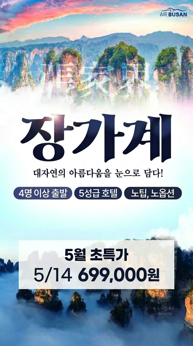 🏆 담당자 강력 추천 1순위 상품 ✔ 핵심 관광 + 프리미엄 특전 + 업그레이드 식사까지 👉 “이 가격에 이 구성, 다시 없습니다!” 🎁 와이투어 ONLY! 압도적 혜택 💥 총 $400 이상 포함된 특전 패키지 💥 ✔ 가이드/기사 경비 포함 (추가비용 NO!) ✔ 세계 최장 460m 유리다리 + 대협곡 풀코스 ✔ 장가계 대표 공연 ‘천고정쇼’ 포함 ✔ 천문산 핵심 ALL-IN (유리잔도 + 귀곡잔도 + 정상코스) ✔ 황룡동굴 VIP 코스 입장 ✔ 여행 피로 싹~ 발+전신 마사지 1회 ✔ 보봉호수 VIP 유람선 탑승 ✔ 핫플 72기루 내부관광 + 탕후루 제공 ✔ 감성 한 잔 ☕ 커피 or 밀크티 제공 ✔ 객실당 과일바구니 증정 🍎 👉 옵션? 추가비용? 없습니다. 전부 포함입니다. 🍽️ “식사까지 다르다” 프리미엄 구성 🔥 여행 만족도 = 식사에서 결정됩니다 🔥 ✔ 진짜 보양식! 누룽지 닭백숙 ✔ 깊은 풍미 버섯전골 ✔ 건강한 산채 비빔밥 ✔ 한국식 보쌈 정식 ✔ 속까지 시원한 동태탕 ✔ 한국인의 소울푸드 삼겹살 특식 👉 “어디서 먹느냐가 아니라, 무엇을 먹느냐가 다릅니다.”