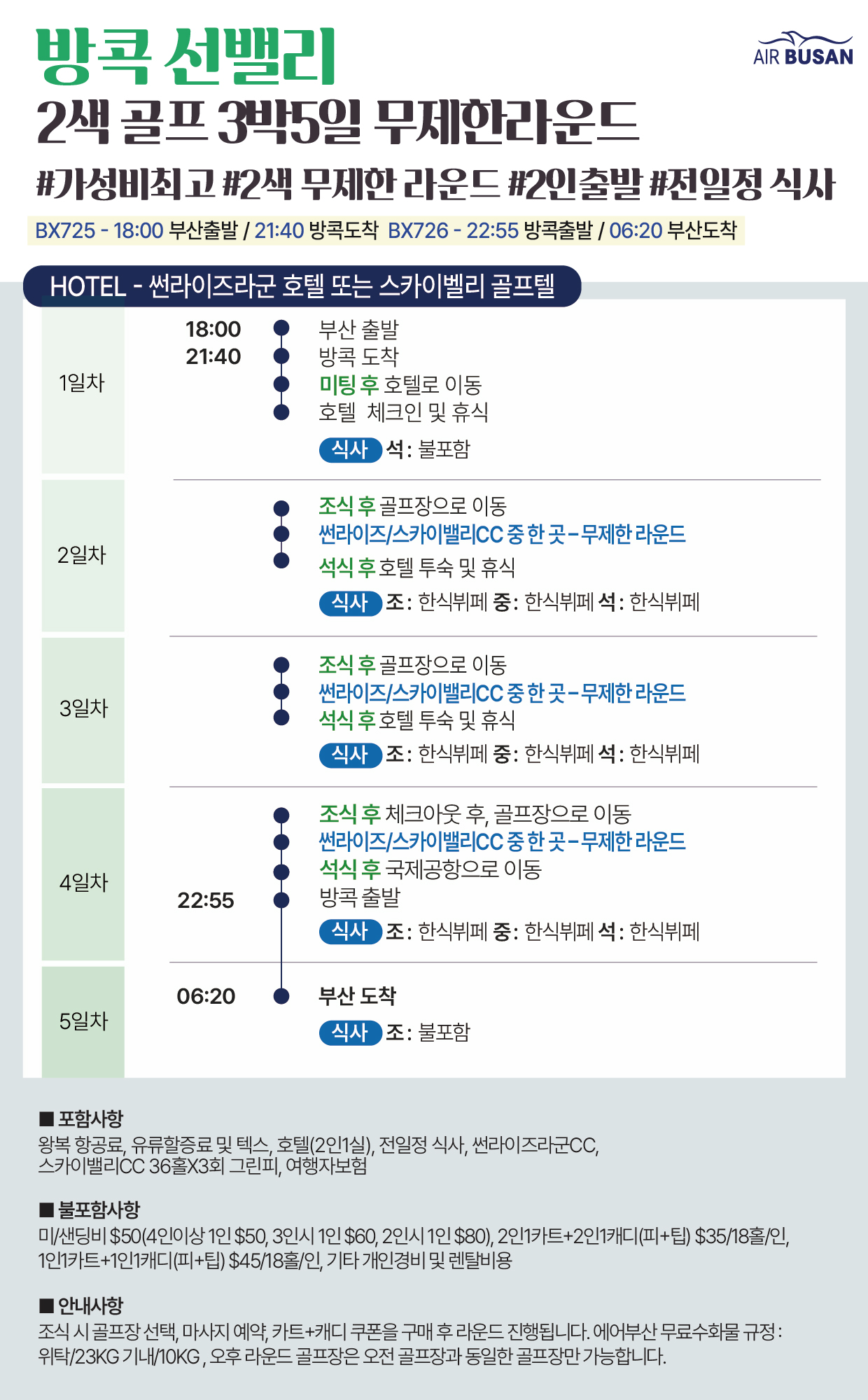 ✨4월한정특가!✨[부산출발]❤️방콕 썬라이즈&스카이밸리 2색 무제한 골프 3박5일❤️