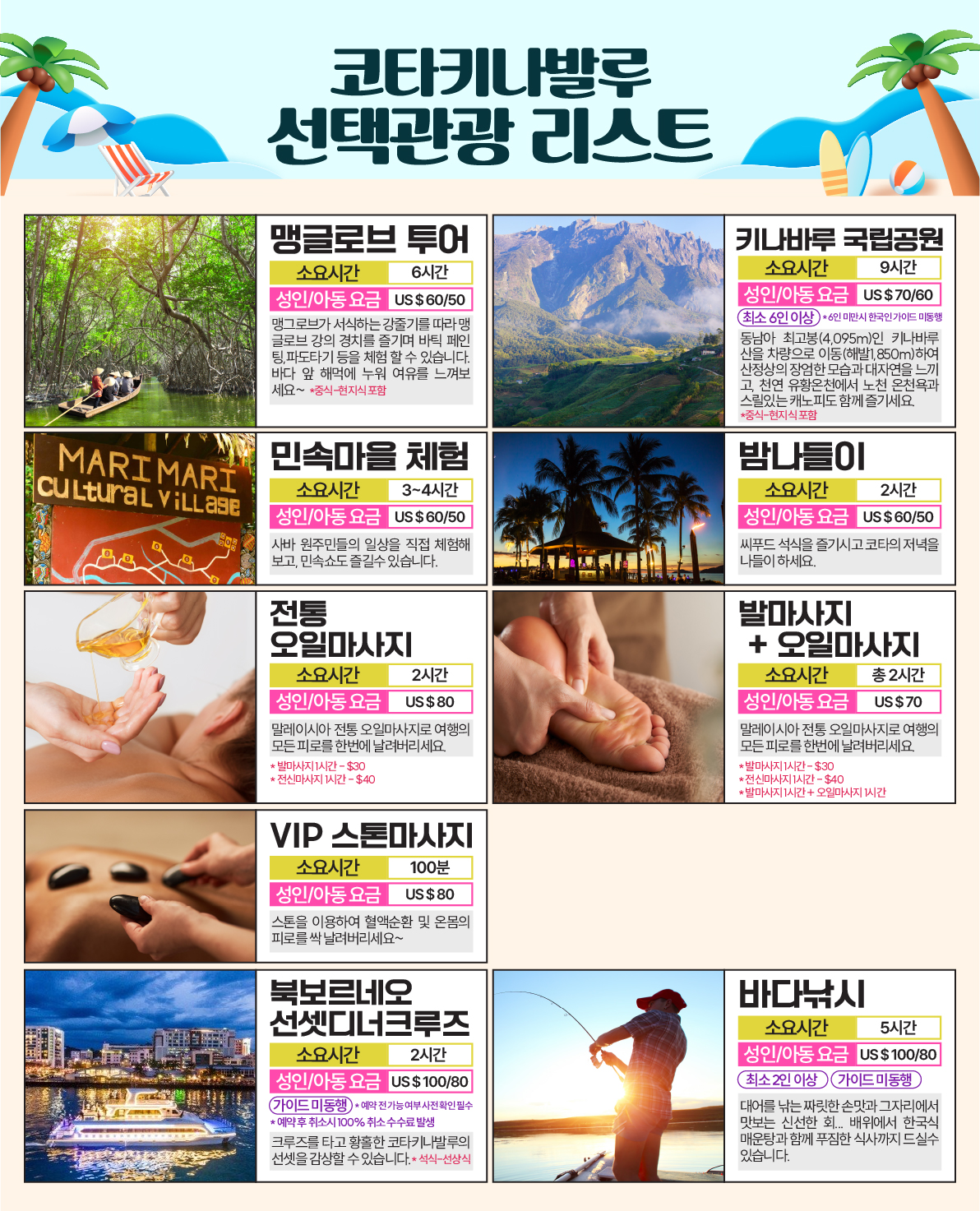 선택관광 상세정보는